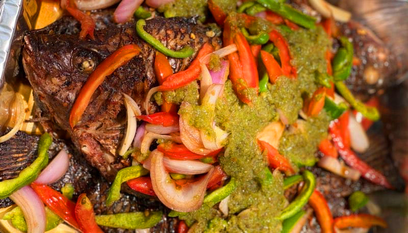 Jollof rice/sausage, Fried, Garlic potatoes, Grilled chicken, Grilled, Tilapia/green pepper and veggies, Assorted fried rice, Salmon and lemon pasta, Beef stir fry, Mac and cheese White Rice/red stew, Fettuccine, Rice and Peas, Stewed chicken, Fried, chicken Plantain, Fufu /light soup, Banku/Okra